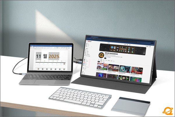 휴대용 모니터는 말 그대로 언제 어디서든 쓰도록 휴대성을 겸비한 모니터입니다. 주로 노트북 패널을 활용하므로 작고 가벼우며 크기가 비슷한 노트북과 잘 어울립니다. 최근에는 USB-C를 겸비한 휴대용 모니터도 많아 모바일 기기뿐만 아니라 닌텐도 스위치 등을 연결해서 큰 화면으로 즐길 수 있습니다.