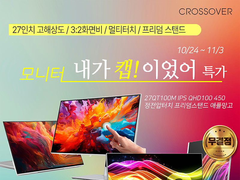 [리뷰] 화질과 성능모두 만족스러운 27인치 만능 모니터, 크로스오버 27QD166CM QHD iPS USB-C 화이트 Ai 멀티스탠드