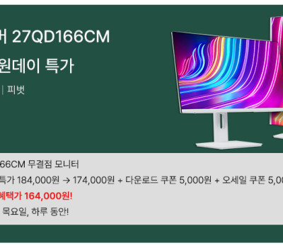 27인치 IPS QHD 화이트 멀티스탠드 모니터 15만4천원! 최대 17% 할인 1월 롯데온 신년특가