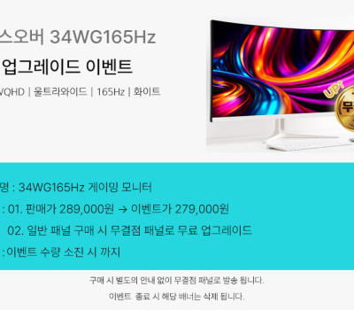 (무결점 27만9천원) 34인치 UWQHD 165Hz 크로스오버존 게이밍 모니터 이벤트