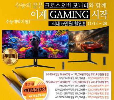“수능 끝! 이제 GAMING 시작” 최대 6만원 할인! 크로스오버존 인기 고해상도 게이밍 모니터