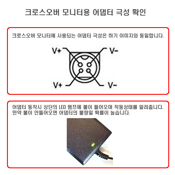 크로스오버 모니터용 어댑터 극성확인은 어떻게 하나요?