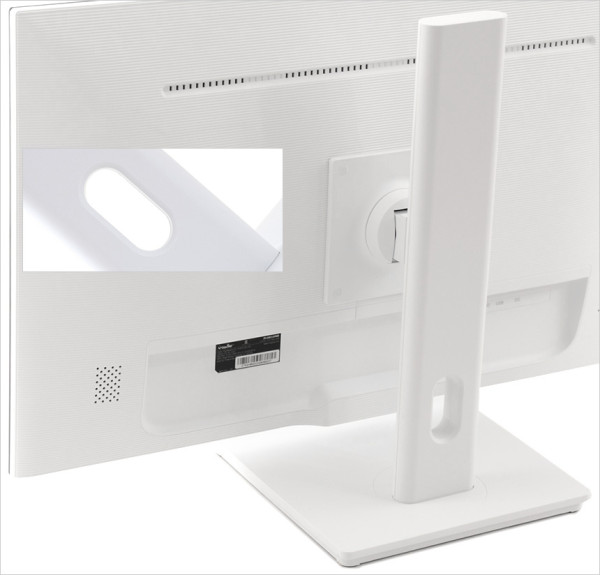 기본 장착된 스탠드를 분리하면 100mm 베사홀이 제공되어 벽에 걸거나 ARM 등에 장착해 사용할 수 있으며 하단에는 HDMI 와 DP 단자 및 오디오 OUT 단자가 제공되어 다양한 디바이스와 연결해 활용할 수 있다. 또한 USB 단자를 지원해 스마트폰 충전용으로 활용할 수 있다.